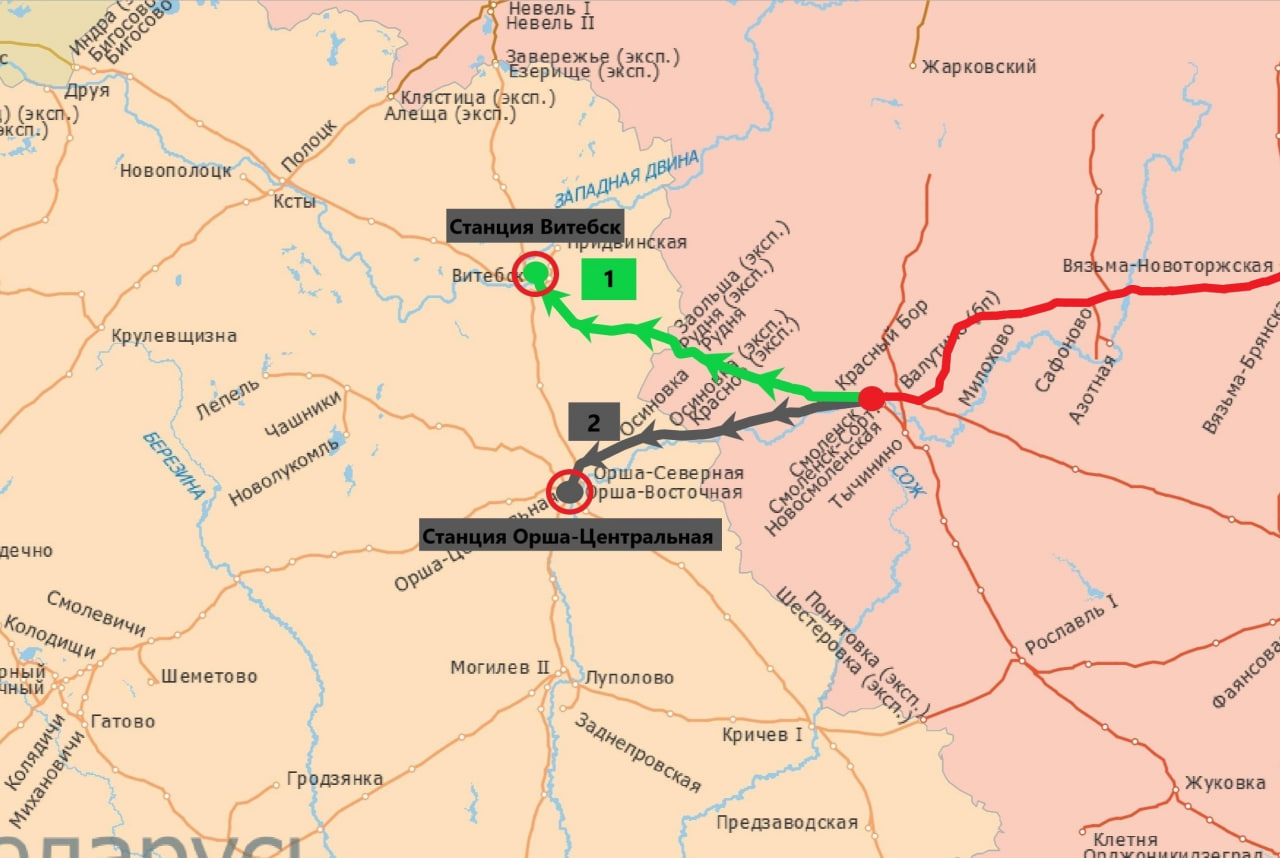 Расстояние до станции Орша составляет 111 км, время следования с указанным локомотивом составит не более полутора часов. До станции Витебск — 133 км, время следования составит около двух с половиной часов.